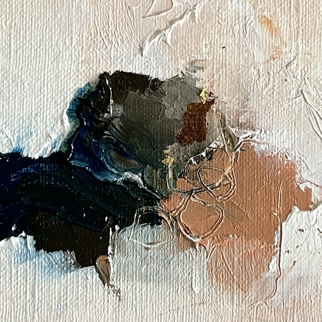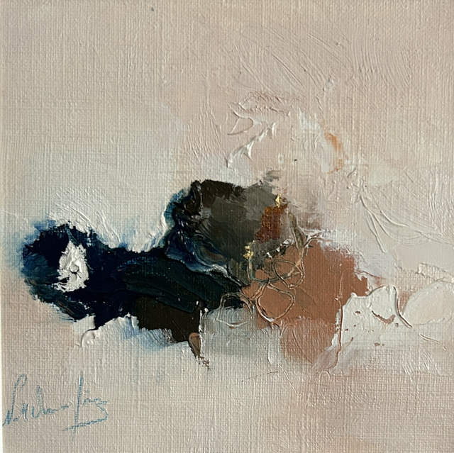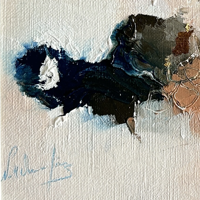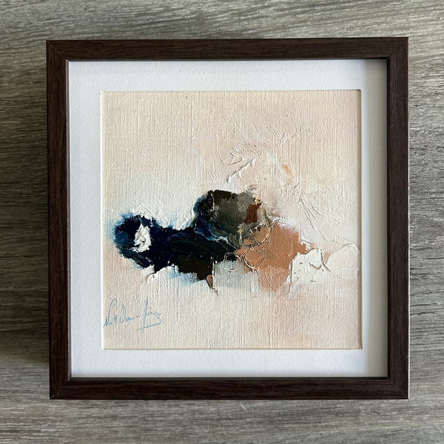 Peinture à l huile sur papier toilé, avec passe-partout de 12x12 cm . Vendue encadrée . Cadre bois brun foncé 15x15 cm