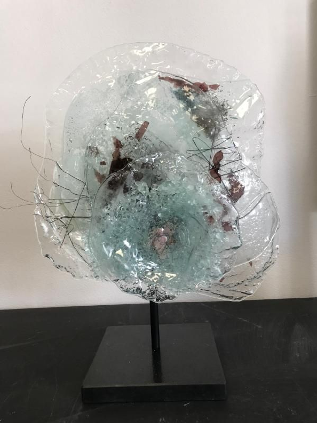 Verre fusionné, thermophormé, inclusion métal, grisaille