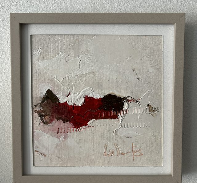 Peinture à l huile de 13x13cm avec passe-partout vendue encadrée.