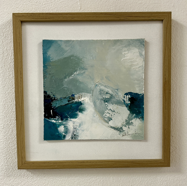 Peinture à l huile sur papier toilé vendue encadrée de 15x15 cm. Cadre couleur chêne clair