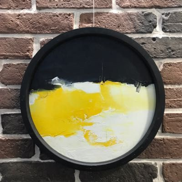 Diamètre 30 cm . Tondo huile sur toile marouflée sur bois